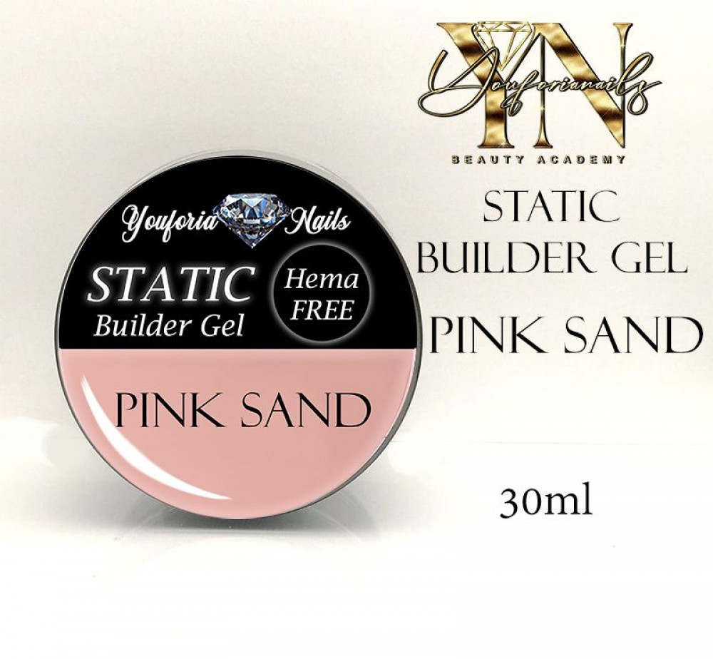 Cover builder gel in a Pink Sand color. Ideal for Babyboomer technique. It has thixotropic properties which means it has solid viscosity but becomes liquid when manipulated. Super easy and fast to work with.